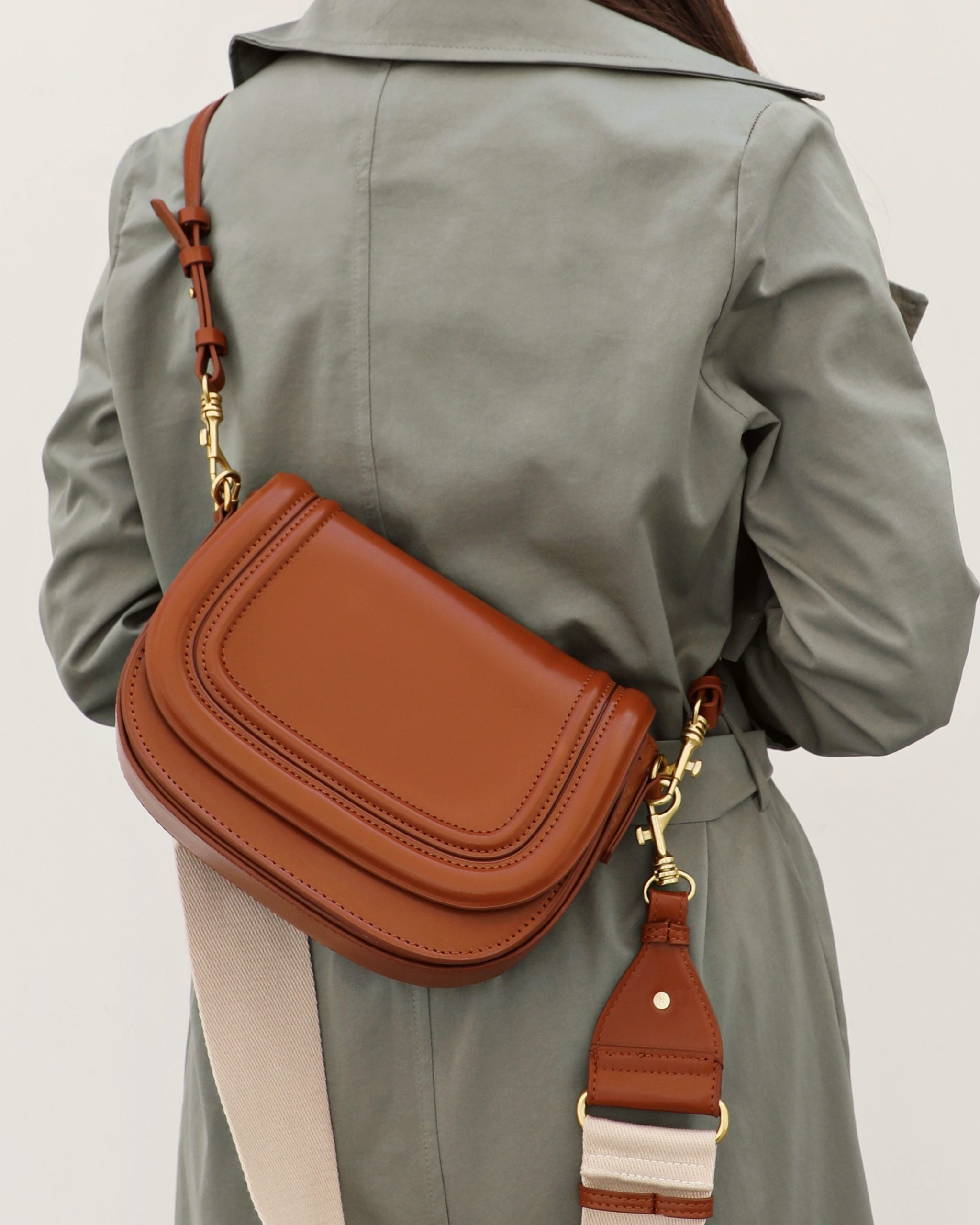 SOFT LEATHER BAG WITH A DISTINCTIVE MODERN STRAP